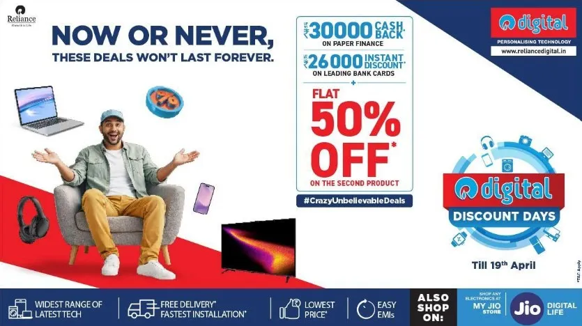 Reliance Digital has announced that its nationwide campaign, 'Digital Discount Days', is now in its final days and will run until April 19, 2026. As part of the campaign, the retailer is offering deals, including discounts, financing options and bundled purchase benefits, to help customers upgrade their electronics.